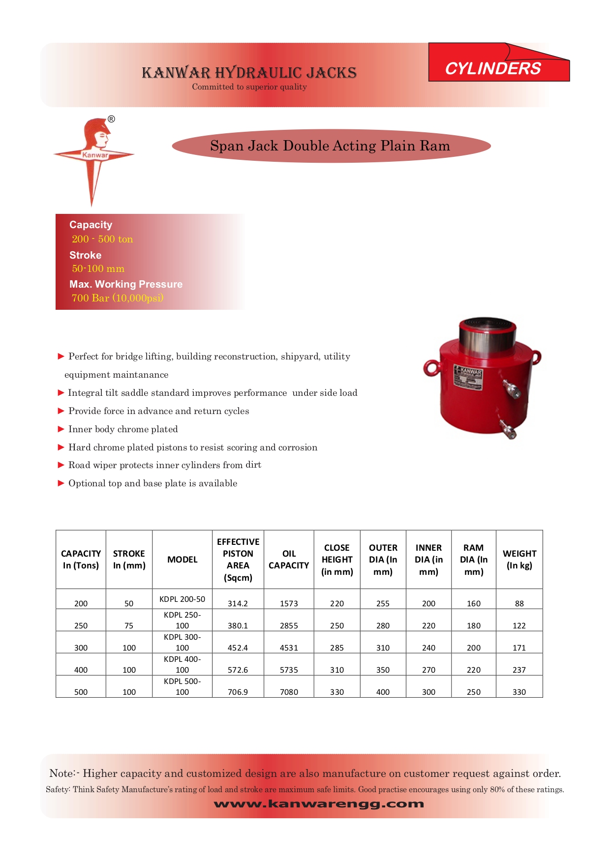HYDRAUILC SPAN JACK SINGLE ACTING PLAIN RAM
