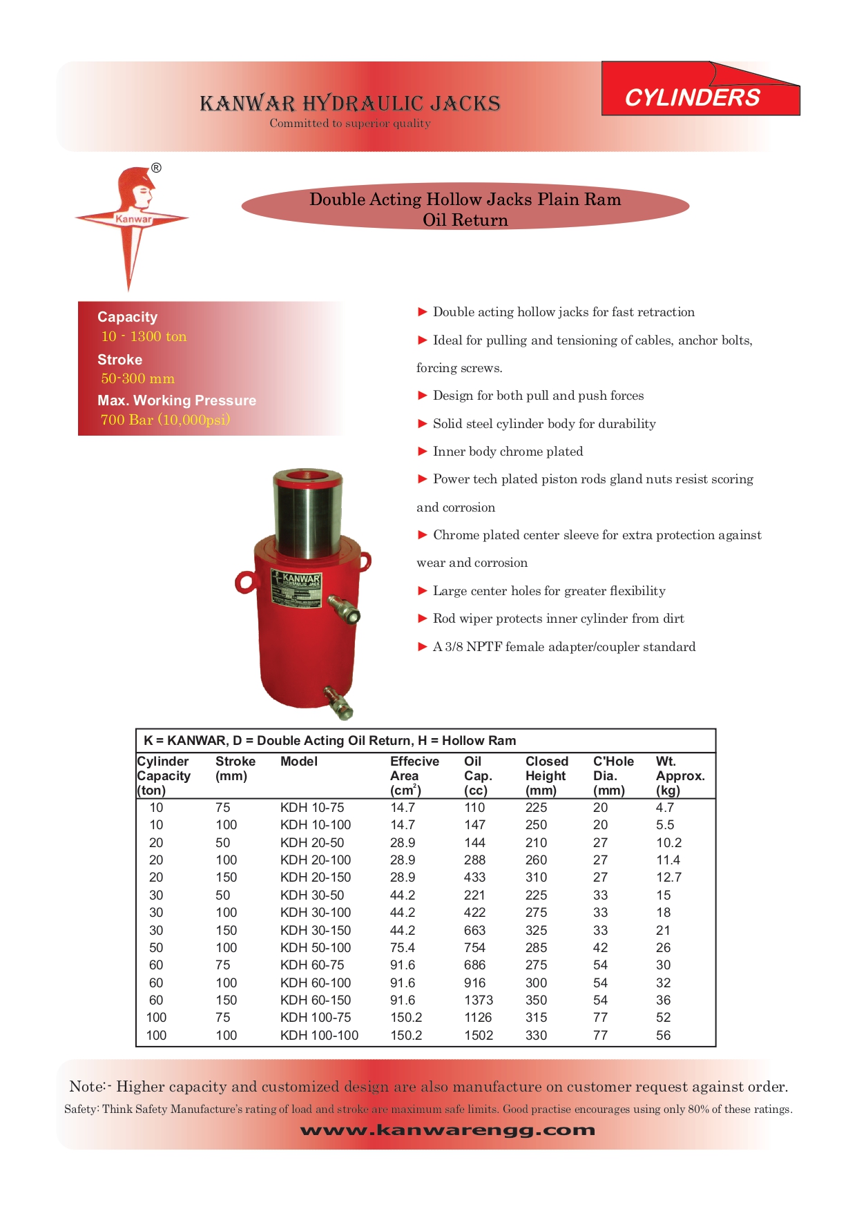 HYDRAUILC HOLLOW JACK DOUBLE ACTIING PLAIN RAM