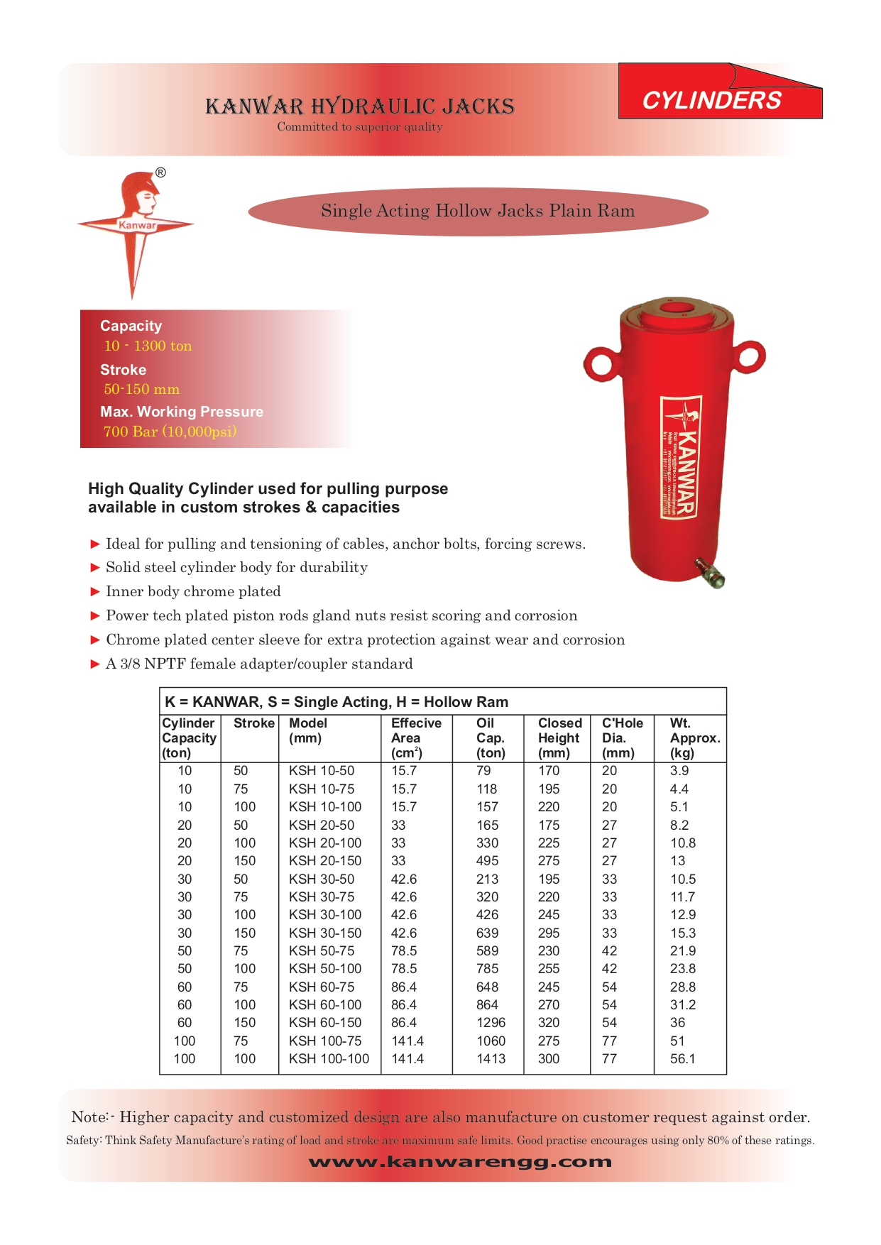 HYDRAUILC HOLLOW JACK SINGLE ACTIING PLAIN RAM