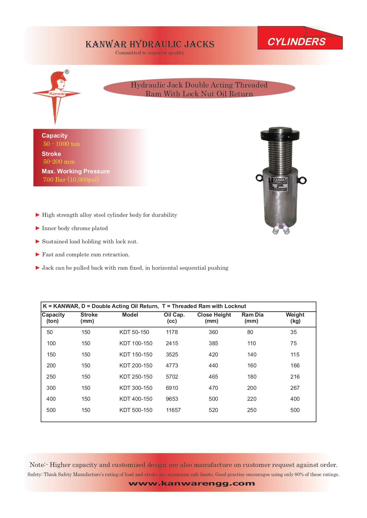 HYDRAUILC JACK DOUBLE ACTING THREADED RAM LOCKNUT