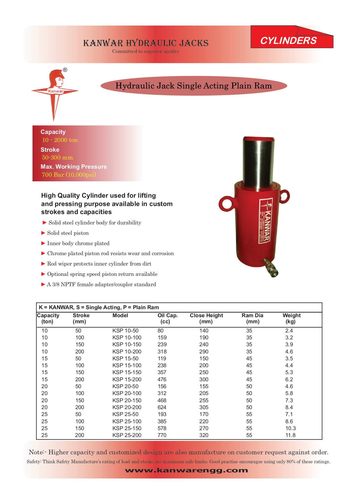 HYDRAUILC JACK SINGLE ACTING PLAIN RAM