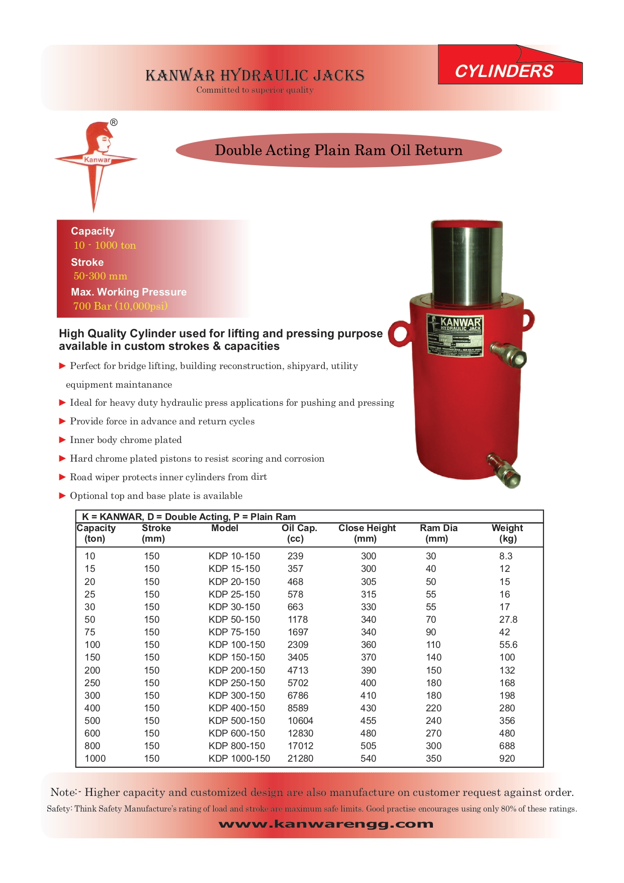 HYDRAUILC JACK DOUBLE ACTING PLAIN RAM